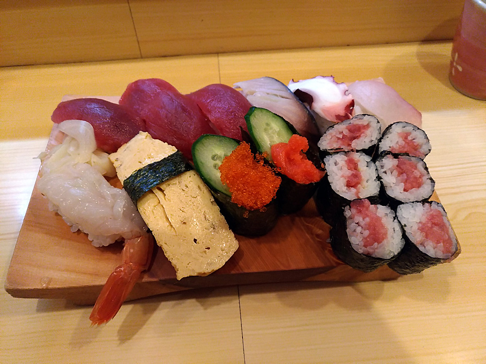 2018-12-14 大和水産 ごはん ランチ 三河島 荒川区 寿司 20181213 仕事中、空腹に耐えかねて大和水産へ。1Fでお寿司食べてました。回転寿司行くくらいなら断然こっちだね! ランチ握りの1.5人前を注文。マグロは3貫全部赤身ですが、それでもおいしいので問題なし。脂の乗ったマグロは巻物に使われてるのでそっちで楽しめますしね。 地味に海老がボタン海老だったり、玉子がやけにうまかったり。やはり回らないお寿司だけあってレベルの高さを感じますね。普段は隣の魚屋さんでパックの握りを買って、酒のつまみにしています。こっちは中トロも入っててオススメなのですよ。